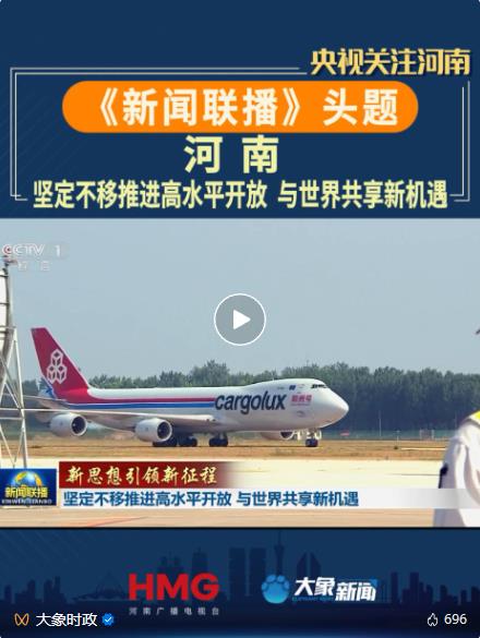 央視《新聞聯(lián)播》關注鄭盧“空中絲綢之路”